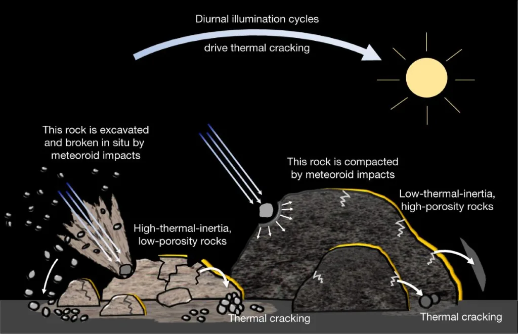 Fine-regolith production on asteroids controlled by rock porosity.